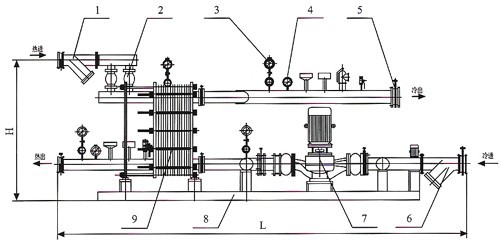 6.除污器 | 7.循環(huán)泵 | 8.底座 | 9.板式換熱器 | 10.補水泵 |